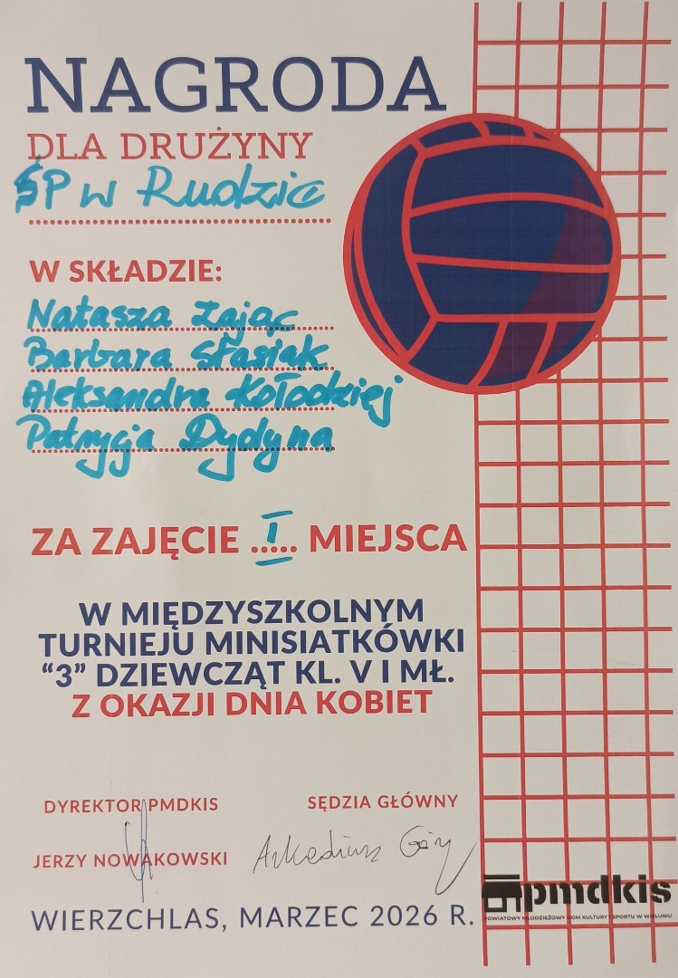 W dniu 13.03.2026 r. w sali gimnastycznej ZSP Wierzchlas odbył się MIĘDZYSZKOLNY TURNIEJ MINISIATKÓWKI “3” dziewcząt kl. V i mł. z okazji DNIA KOBIET.