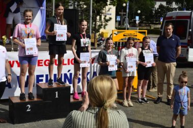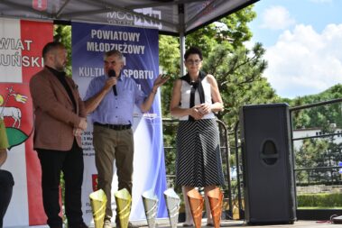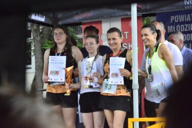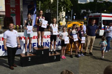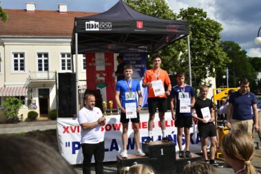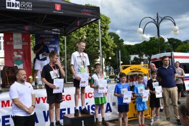 W dniu 26.05.2024 r. w centrum Wielunia zorganizowany został XVI bieg uliczny „Pętla Wieluńska”. Bieg podzielony został na kategorie wiekowe: przedszkolaki, klasy I-III, IV-VI, i VII-VIII szkół podstawowych oraz szkoły ponadpodstawowe. Ostatnią konkurencją był bieg główny na dystansie 2500 m, w którym wystartowało 103 zawodników. Ogółem w zawodach startowało ponad 346 osób. Organizatorem zawodów był Powiatowy Młodzieżowy Dom Kultury i Sportu w Wieluniu oraz Starostwo Powiatowe w Wieluniu przy patronacie Burmistrza Wielunia. W imieniu organizatorów medale i puchary wręczali: Starosta Wieluński – Maciej Bryś, Wiceburmistrz Wielunia – Joanna Skotnicka Fiuk, Wicestarosta Wieluński Krzysztof Dziuba. Dziękujemy nauczycielom wychowania fizycznego i pracownikom administracji PMDKiS za przygotowanie i przeprowadzenie zawodów oraz zapewnienie nagłośnienia. Dziękujemy druhom OSP w Wieluniu, Wieluńskiemu Domowi Kultury, Komendzie Powiatowej Policji w Wieluniu, Straży Miejskiej w Wieluniu, Zespołowi Szkół Specjalnych, stowarzyszeniu “Wieluń Biega”. Dziękujemy wszystkim uczestnikom biegu za skorzystanie z naszej oferty, a szczególnie biegaczom startującym w biegu główny, którzy poza pokonywanym dystansem zmagali się ze strugami deszczu.