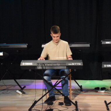 W dniu 21.06.2022 r. w Powiatowym Młodzieżowym Domu Kultury i Sportu w Wieluniu odbyło się kolejne muzyczne wydarzenie podsumowujące całoroczną pracę kół keyboardowych. Uczestnicy zajęć keyboardowych bardzo udanie zaprezentowali się przed swoimi rodzicami i znajomymi w krótkich popisach muzycznych, które zapowiadał i fachowo komentował ich instruktor pan Zbigniew Szpikowski.
