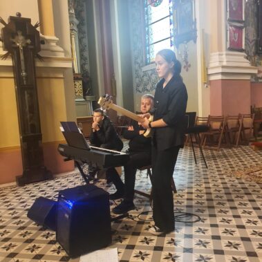 Chórowi na elektrycznym pianinie akompaniował Zbigniew Szpikowski, na gitarze basowej grała Maja Ciężka a na perkusji (na cajonie) Oskar Wszoła. Gratulujemy całemu zespołowi!