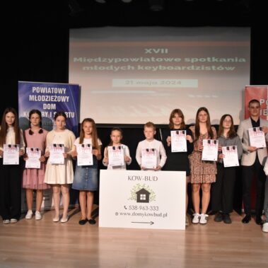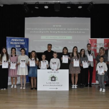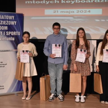 W dniu 21.05.2024 r. w Powiatowym Młodzieżowym Domu Kultury i Sportu w Wieluniu zorganizowane zostały XVII Międzypowiatowe Spotkania Młodych Keyboardzistów. Konkurs zorganizowany został w trzech kategoriach wiekowych. Jury w składzie: pani Jagoda Wojewódka, pan Jakub Jurdziński i pana Marek Walczak wysłuchało, oceniło i nagrodziło wykonawców konkursu. Nagrody zostały ufundowane przez Starostwo Powiatowe w Wieluniu, firmę budowlaną Kow Bud oraz Fundację „Dotknij Pomocy”. Koordynatorem i organizatorem konkursu był pan Zbigniew Szpikowski. Dziękujemy wszystkim pracownikom administracji i obsługi naszej placówki za zaangażowanie w organizację, a uczestnikom gratulujemy udanych występów.