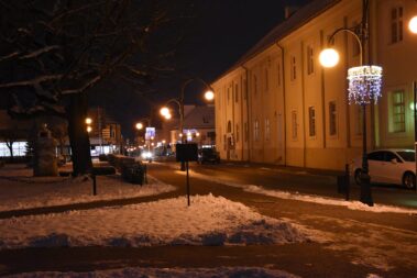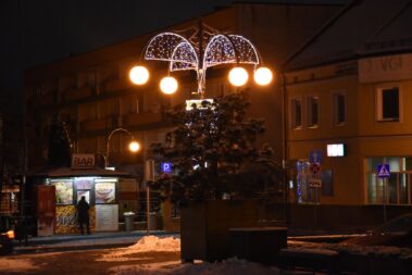 Zimowy wieczór w centrum Wielunia – widziany obiektywami aparatów fotograficznych uczestników koła fotograficznego Oli i Wojtka w dniu 8.12.2021 r.